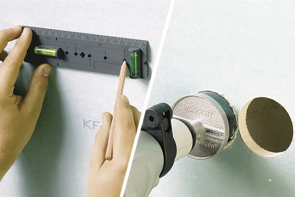 • Šablon za bušenje rupa za utičnice WOLFCRAFT