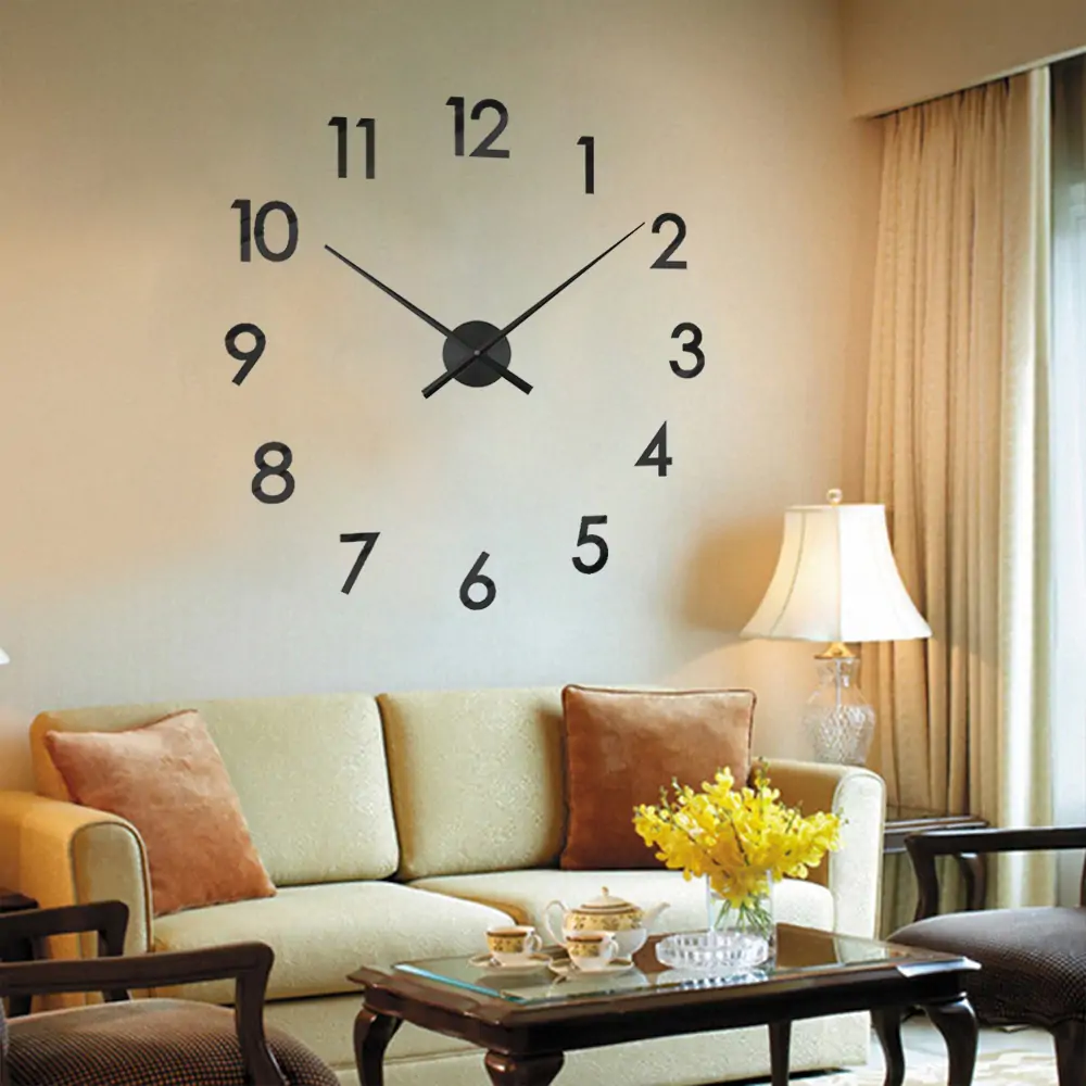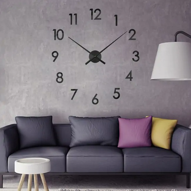 Samolepljivi 3D crni zidni sat T4341BDimenzije: 1m x 1mDebljina samolepljivih brojeva: 1,1 cmMaterijal brojeva: EVA pena sa prednje strane akril plast ...