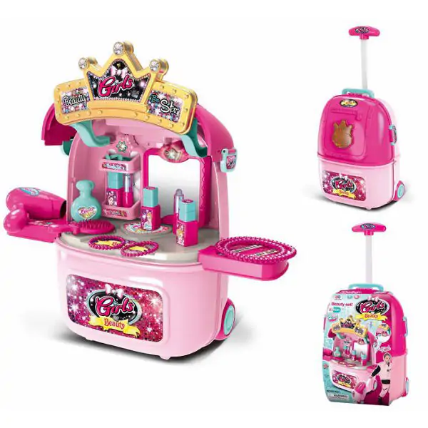 2u1 kozmetički stolić u kovčegu savršen je poklon za male ljubiteljke lepote i maštovite igre. Ovaj kreativni set podstiče decu da istražuju svet šminke, razvijaju organizacione veštine i uživaju u ulozi malih princeza. Zahvaljujući praktičnom kovčegu na točkiće, komplet je kompaktan, lako se skladišti i pogodan za igru kod kuće ili u pokretu. Idealan je za rođendane i posebne prilike, garantujući sate kreativne zabave.