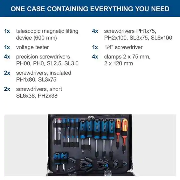 • Praktičnost: Svi alati dolaze u kompaktnom koferu koji omogućava laku prenosivost.