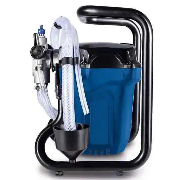 • Snažan motor od 750 W obezbeđuje dovoljno snage za kontinuiran i stabilan rad, dok maksimalan protok od 1.1 L/min (u zavisnosti od gustine boje) omogućava efikasan i brz rad na većim površinama. Integrisani regulator pritiska do 207 bara pruža mogućnost preciznog podešavanja, što doprinosi optimalnoj raspodeli boje bez zgrušavanja i prskanja. Udoban okidač dodatno poboljšava kontrolu tokom rada, omogućavajući korisniku da lako prilagodi količinu nanosa.