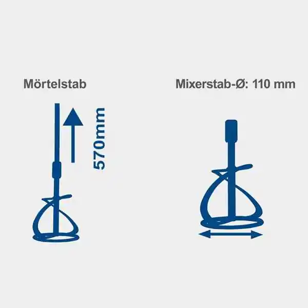 • Uređaj dolazi sa dva štapa za mešanje (prečnika 110 mm, dužine 570 mm), koji omogućavaju udoban rad iz uspravnog položaja, smanjujući opterećenje leđa.