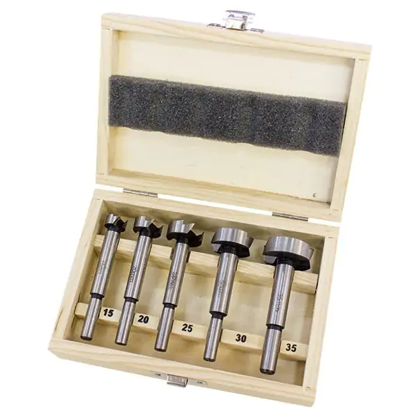 • Ovaj set sadrži pet različitih glodala sa prečnicima od 15 mm do 35 mm, što vam omogućava da precizno izbušite šarke različitih veličina.