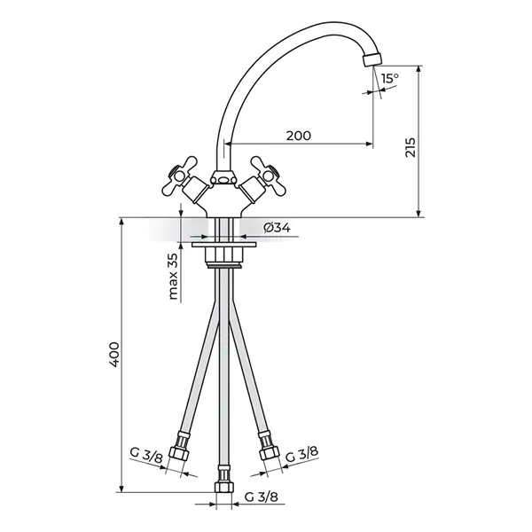 • Naziv proizvoda: Slavina-baterija stojeća za sudoperu za protočni bojler sa 3 cevi Nostalgija ROSAN