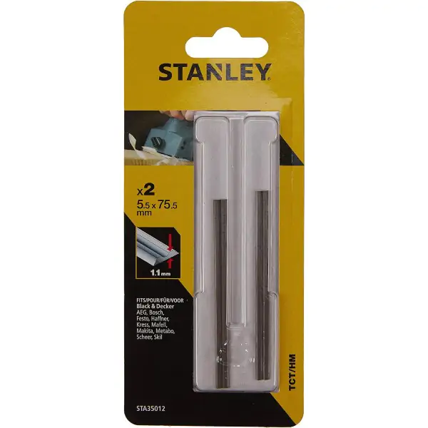 • Stanley STA35012 rezervni nožići za električno rende predstavljaju vrhunsku opciju za održavanje visokih performansi vašeg alata. Ovi TCT (tungsten carbide tipped) noževi, dimenzija 5.5x75.5x1.1mm, garantuju izvanrednu izdržljivost i oštrinu. Njihova posebno obložena TCT/HM sečiva pružaju dugotrajan rad, omogućavajući vam da efikasno obrađujete različite vrste materijala sa pouzdanošću.