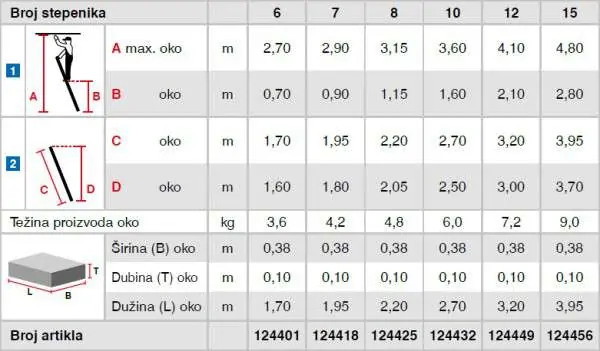 • Naziv proizvoda: Stepeničaste, prislone merdevine 6 gazišta Stabilo