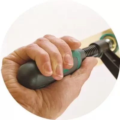 • Ručica ergonomski formirana sa anti - slip umetkom, za optimalan prenos snage koji se ostvaruje preko pocinkovanog vretena sa trapeznim navojem