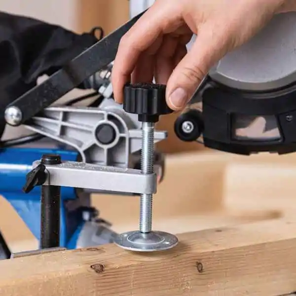 • Proširivi stol: Obostrano proširenje stola pruža podršku za duže obratke, dok vijčana stezaljka osigurava stabilnost tokom rada.