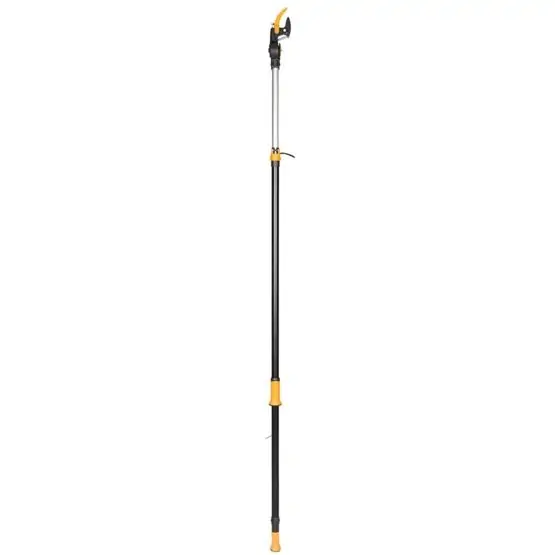 • Jedna od najznačajnijih prednosti ovog rezača je njegova podesiva drška koja se može podešavati od 2,4 do 4 metra. Ovo omogućava korisniku da dostigne maksimalnu visinu rada do 6 metara, što je ključno za rad na visokim drvećima i grmlju.