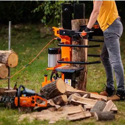 • Uređaj radi na standardnom naponu od 230 V i frekvencijom od 50 Hz, čineći ga kompatibilnim sa uobičajenim električnim instalacijama. Sposoban je za cepanje drva prečnika od 8 do 35 cm, pružajući impresivnu silu cepanja od 8 tona.