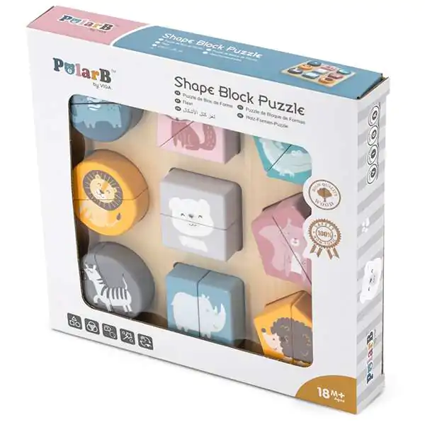 • Slagalica oblika blokova Slagalica se sastoji od 18 geometrijskih blokova u boji sa likom 9 životinja iz divljine
