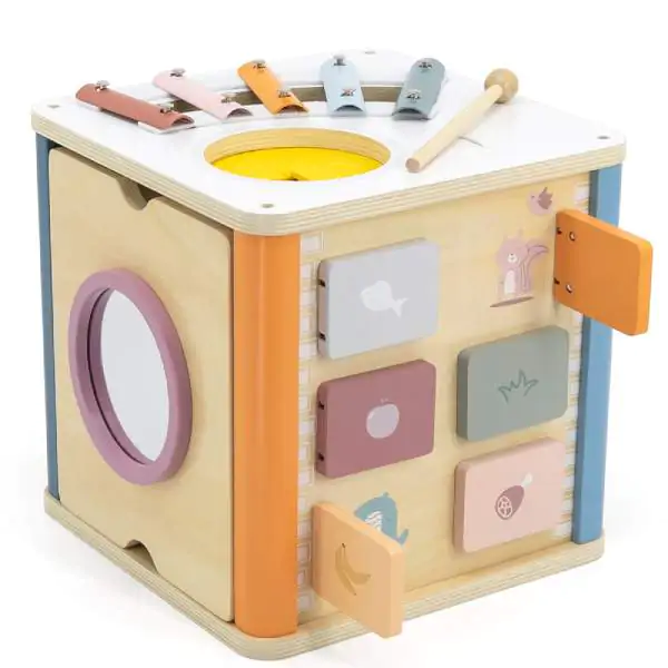 Viga Polar B aktiviti kocka 8u1Aktiviti kocka 8-u-1 nudi niz senzornih iskustava za mališane: ksilofon, sortiranje oblika, vrteći se panoramsk ...