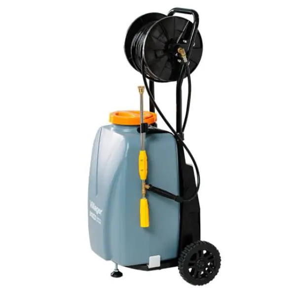 • Praktičnost na Točkovima: Dizajn na točkovima omogućava lako manevrisanje po različitim terenima, smanjujući fizički napor i čineći prskalicu izuzetno mobilnom.