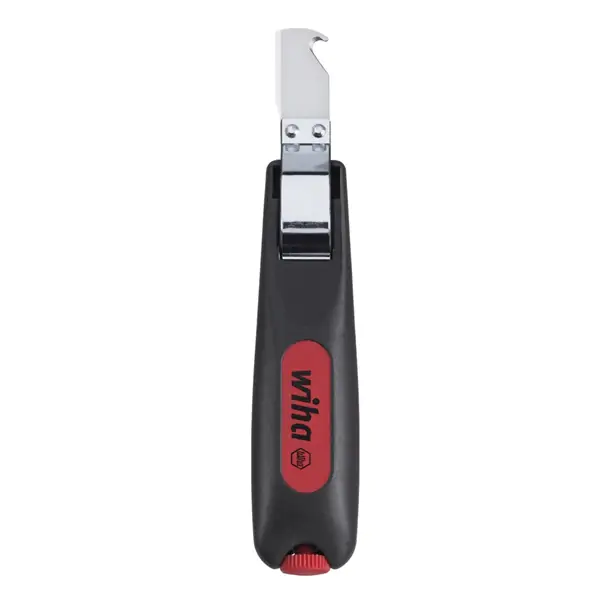 • Wiha 44618 alat za skidanje izolacije je dizajniran sa sigurnošću na umu. Sigurnosni poklopac prekriva nož i njegovu kuku tokom nošenja i skladištenja, čime se smanjuje rizik od povreda. Takođe, alat savršeno leži u ruci zahvaljujući ergonomski oblikovanoj, velikoj ručki, što omogućava udoban i siguran rad, čak i tokom dužeg korišćenja. Kao dodatni bonus, ručka alata sadrži i rezervnu oštricu, čime se produžava vek trajanja alata i osigurava spremnost za sve izazove.