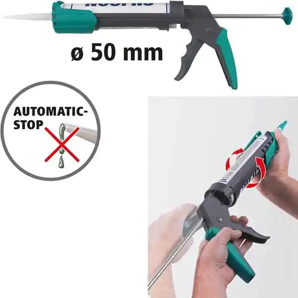 • Automatska funkcija zaustavljanja kapanja: Ova funkcija sprečava neželjeno curenje materijala nakon otpuštanja okidača, što doprinosi čistijem radu i smanjuje potrebu za dodatnim čišćenjem.