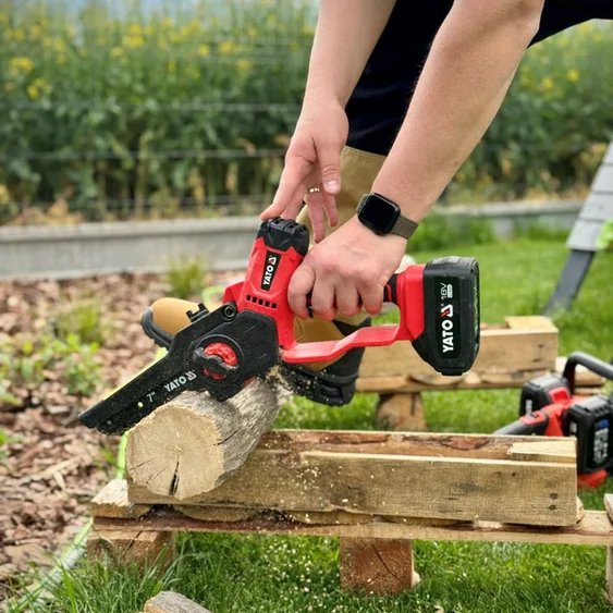 • YATO akumulatorska lančana testera YT-828134 je kompaktno, efikasno i izuzetno praktično rešenje za brzo i čisto održavanje bašta, voćnjaka i zelenih površina. Ova lagana mini testera, koja se isporučuje u SOLO varijanti (bez baterije i punjača), dizajnirana je za korisnike koji već poseduju YATO 18V akumulatorski sistem i traže precizan alat za sečenje grana, mladica i žbunja. Njena najvažnija karakteristika je visokoperformansni motor bez četkica (brushless) koji obezbeđuje veću snagu i obrtni moment u odnosu na svoju veličinu, uz duži radni vek, manju potrošnju energije i tihi rad. Sistem automatskog podmazivanja lanca tokom rada ne samo da produžava vek trajanja lanca i vodilice i održava ih oštrim, već i oslobađa korisnika od potrebe za ručnim podmazivanjem pre svakog korišćenja. Ergonomski dizajn sa mekanim gumenskim oblogama na dršci garantuje siguran i udoban hvat koji smanjuje vibracije i zamor ruku tokom produženog rada. Idealna je za proređivanje krošanja, sečenje grana do nekoliko centimetara u prečniku, oblikovanje žive ograde i sve druge poslove gde je ručna testera previše naporna, a velika testera preglomazna. Ova testera predstavlja savršen balans između moći, pristupačnosti i jednostavnosti održavanja.