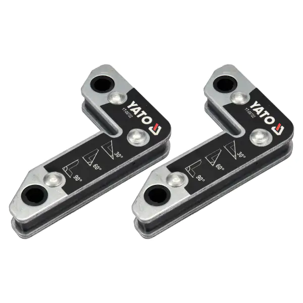 • YATO set od 2 magnetna ugla YT-08722 predstavlja praktično i moćno rešenje za olakšanje i ubrzanje zavarivačkih i montažnih radova, omogućavajući precizno i stabilno fiksiranje komponenti pod tri najčešća ugla. Izrađeni od robusnog čelika, ovi magnetni uglovi poseduju moćne neodimijske magnete sa silom držanja od 25 kg po magnetu, što obezbeđuje pouzdano i sigurno pozicioniranje limova, profila, cevi i drugih elemenata tokom operacija zavarivanja ili montaže. Njihova glavna funkcionalnost ogleda se u mogućnosti podešavanja pod tri ugla — 30°, 60° i 90° — što pokriva većinu standardnih scenarija u izradi ramova, kutija i drugih konstrukcija. Ova prilagodljivost, kombinovana sa kompaktnim dizajnom, omogućava slobodan pristup spoju sa svih strana, olakšavajući tačno poravnavanje i nesmetano izvođenje zavara ili mehaničkog pričvršćivanja. Kao praktična pribadača u radionicama za obradu metala, stolariji i građevinarstvu, ovaj set direktno doprinosi povećanju tačnosti, efikasnosti i kvaliteta finalnog spoja, eliminišući naporno i neprecizno držanje komponenti rukama.