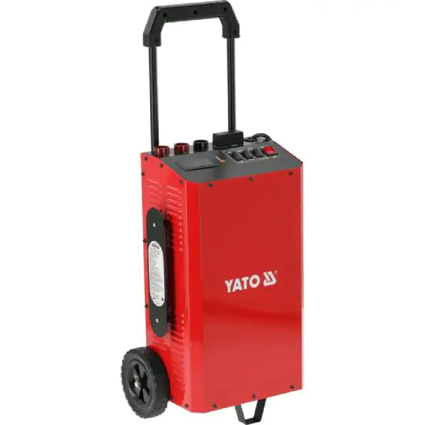• Profesionalni YATO punjač-starter dizajniran je za sigurno i efikasno upravljanje olovnim akumulatorima u svim tipovima vozila i radioničke opreme, nudeći dve ključne funkcije u jednom pouzdanom uređaju. Za režim punjenja, pruža fleksibilnost sa naponskim pragovima od 12 V i 24 V i podešljivim strujnim nivoima od 10 A, 25 A do 42 A, omogućavajući optimalno i brzo punjenje baterija različitih kapaciteta, od 20 do 800 Ah, čak i kada su potpuno ispražnjene (sa radnim naponom >0 V). Za hitne situacije, režim startovanja nudi moćnu prekidnu struju od 420 A (sa radnim ciklusom od 3 sekunde rada i 120 sekundi pauze), pružajući pouzdan brzi start motora čak i pri niskim temperaturama ili kod veoma slabih baterija. Bezbednost i dugovečnost su osigurani automatskom kontrolom temperature koja sprečava pregrevanje i IP20 zaštitnom klasom, čineći ga pogodnim za rad u suvim, zatvorenim prostorima poput servisa i radionica. Uređaj je opermljen kablovima sa krokodil klipsama za bezbedno povezivanje i projektovan je za rad u temperaturnom opsegu od 0°C do +40°C, garantujući celogodišnju upotrebu. Strogo poštovanje pratećih bezbednosnih uputstava, poput isključivanja iz mreže pre spajanja, držanja dalje od varnica i obezbeđivanja ventilacije, čini ovaj punjač-starter ne samo izuzetno moćnim, već i sigurnim izborom za svakog profesionalca.