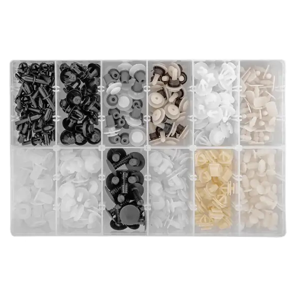 Komplet je zapakovan u praktičan plastični organizator, što olakšava skladištenje i brzo pronalaženje potrebnog klipa prilikom rada. Set je pogodan za profesionalne automehaničare, ali i za kućnu upotrebu.