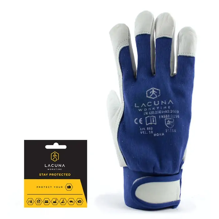 Zaštitne rukavice kožne LAGOA 10Kožna radna rukavica sa ergonomskim palcem, fleksibilne i pristaju uz ruku za precizne radove u suvom okruženjuMaterij ...